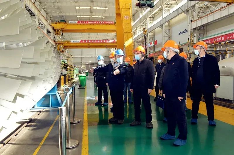 在总装车间,刘金平总经理对陕鼓核心产品在技术创新、应用领域等方面向调研组一行作了介绍。陕鼓创新研制的AV140轴流压缩机是我国航空发动机高空模拟试验的核心动力装备,也是冶金特大型高炉、催化裂化等多领域装备的“动力心脏”。打破了国外对该领域的技术垄断,填补了国内空白,为国产大型高端装备技术的持续提升提供了有力支撑。