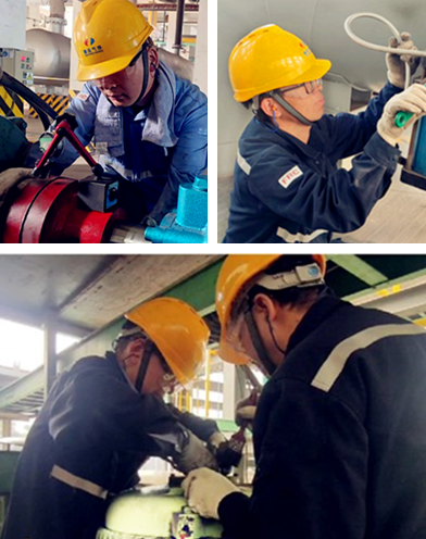 作为检修工作的技术核心,各专业的工程师们肩负重任,他们是检修技术、安全质量的第一责任人。从简单的焊缝对接到复杂的塔器拆装,工程师们一丝不苟,确保每一步操作都符合标准。经常一站就是一上午,一蹲就是一下午,腿酸了,脚麻了,他们就换个姿势继续作业,确保任务按计划顺利进行。