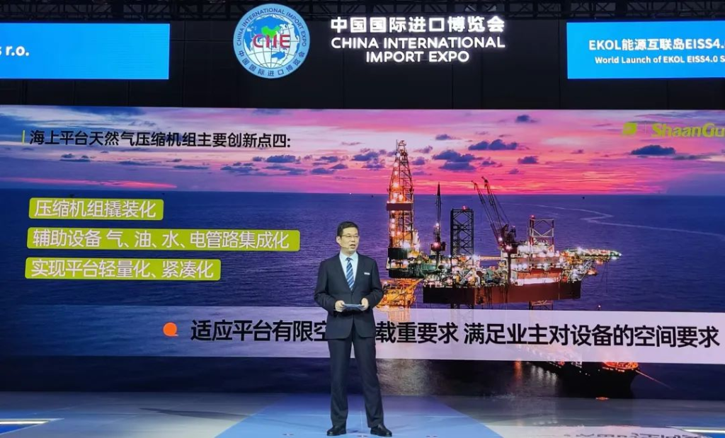 11月6日下午,央视新闻联合中国国际进口博览局共同推出特别节目《进博新品汇》,将全球首发、亚洲首秀、中国首展各种新产品、新技术、新服务。陕鼓动力常务副总经理、工程分公司总经理,陕鼓EKOL公司董事长刘海军主讲,EKOL能源互联岛EISS4.0方案暨海上平台天然气压缩机组进行了全球首发。