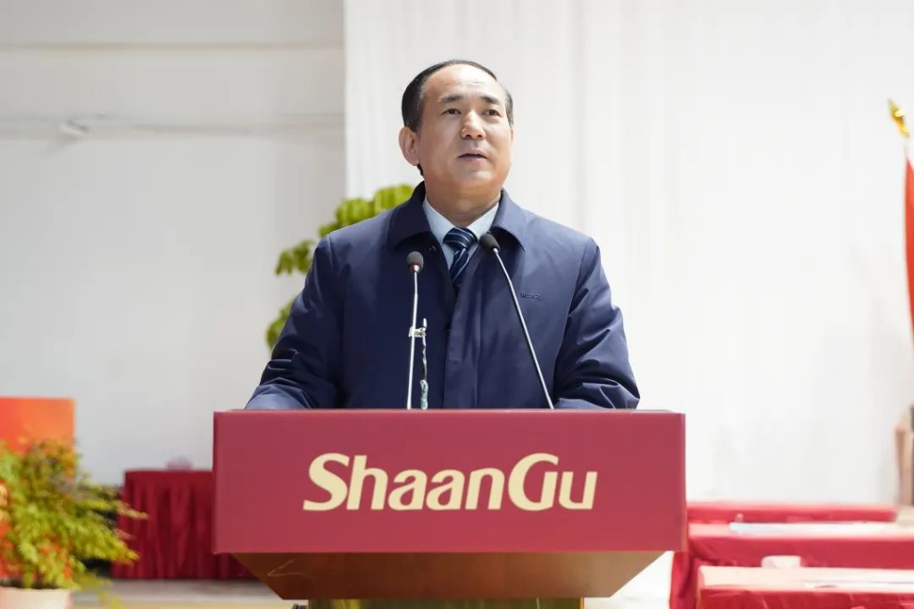 陕鼓集团党委书记、董事长,陕鼓动力董事长李宏安代表集团党委、董事会作题为《化挑战为机遇艰苦努力上台阶千载难逢 ,学思想转阶段打造新质生产力百年基业》的工作报告。首先代表集团党委、总部向受到表彰的先进集体和个人表示热烈的祝贺;向依然奋战在海内外各条战线上的全体员工致以崇高的敬意;向关心和支持陕鼓发展的离退休人员、员工家属表示衷心的感谢;向长期以来支持陕鼓发展的广大客户、合作伙伴,向支持和关心陕鼓发展的各级党委、各级政府及社会各界表示衷心的感谢。