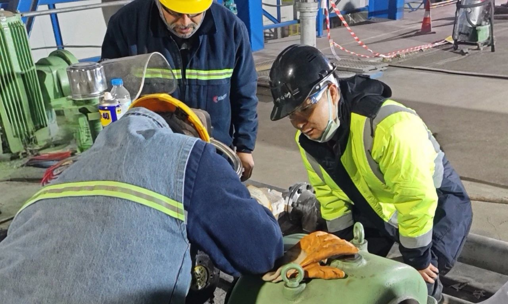 为确保项目高质量完成,陕鼓系统服务项目经理黄西宁带领技术团队一直坚守在现场,与用户紧密配合,开展设备调试和优化工作。他们克服时差、环境等挑战,日夜坚守岗位,通过反复测试和精细调整,确保每台机组达到最佳运行状态。