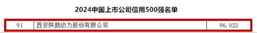 陕鼓动力上榜2024中国上市公司信用500强,位列第91位