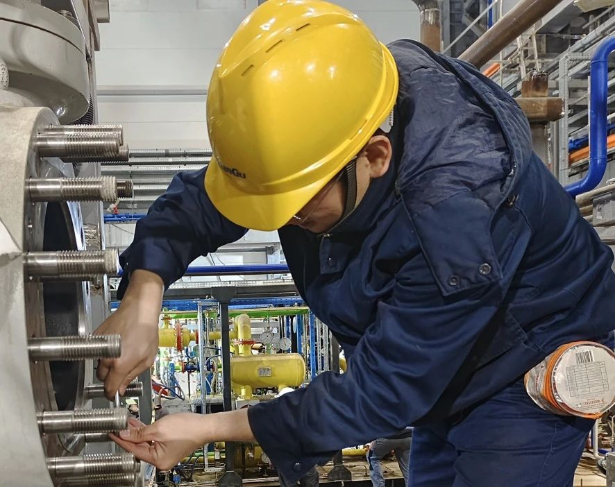在俄罗斯某重要化工基地,陕鼓工程软件调试工程师贾瑞强与团队日夜奋战,为机组提供精准调试服务。该机组投产后,将进一步优化用户的能源利用效率,减少碳排放,推动俄罗斯化工行业绿色升级。