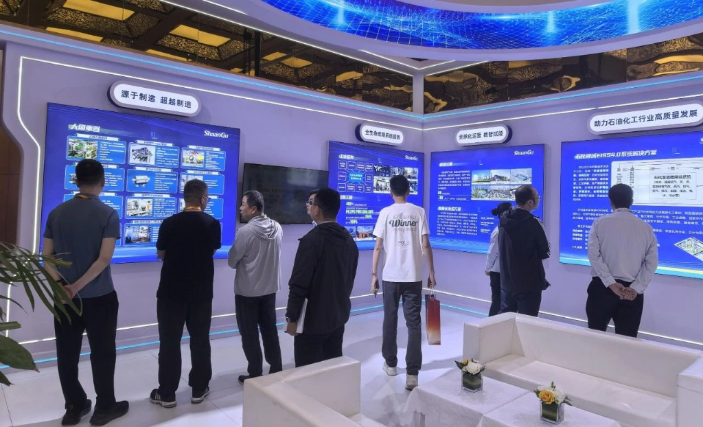 在科技创新成果展览会上,集中发布和展示了石油石化装备产业新产品、新技术、新材料等科技创新成果。期间,陕鼓展区吸引了众多参展人员驻足了解。巡展过程中,中石协、中石油、中石化、中海油、国家管网等主要领导一行来到陕鼓展区参观交流。