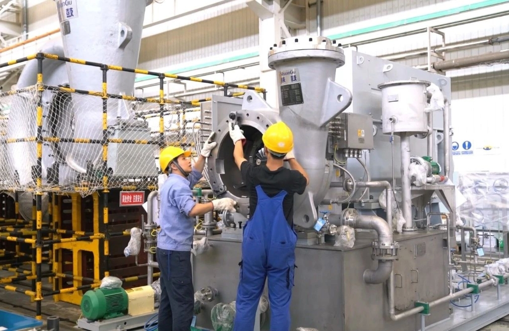 去年五月,班组接下一块硬骨头——华南某企业的大型分体式TRT改造项目。最大难题摆在那里:核心部件的安装定位,必须依托一个远在用户现场且已长期使用的旧底座。这个无法直接触碰的“基准”,对整个机组的制造精度构成了严峻考验。最初方案是另制底板,但成本高昂又费时。孙超沉着应对,带领班组依托现有工装展开了精密测量与复杂计算。他们凭借对制造工艺的深刻理解与多年沉淀的装配经验,最终找到了最优解决方案,不仅确保了极高的装配质量,更按时完成了整个机组的升级改造,收获了用户的充分肯定。