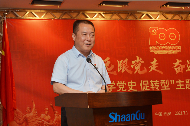 刘金平副书记指出,“党旗红,陕鼓强”的党建品牌打造,让陕鼓走出了一条适合企业特点的党内政治生活与党员日常管理新路子,收到了“活动接地气、工作有活力、党员当先锋、支部强堡垒”的良好效应,成为促进生产经营、企业发展的“红色引擎”。百年奋斗路、启航新征程,站在“两个一百年”的历史交汇点,陕鼓集团党委将推动党史学习教育走深走实,从学习党史中汲取发展力量。学党史、守初心、强信念、促转型,以持续奋斗的姿态,和昂扬向上的气魄,扎扎实实走好陕鼓的智慧绿色转型路。紧密地团结在以习近平为核心的党中央周围,坚定不移贯彻落实习近平总书记全国国有企业党建工作会议精神,不忘初心、牢记使命,站在分布式能源革命潮头,发扬“飞夺泸定桥”精神,树立“要为客户找产品,不为产品找客户”的市场价值观,以坚韧不拔的意志和无私无畏的勇气,拼搏进取,奋勇争先,为打造世界一流智慧绿色能源强企再立新功!