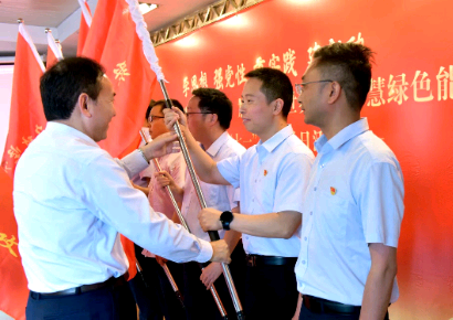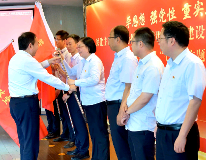 李宏安书记为第二批“聚力攻坚”党员先锋队授旗。